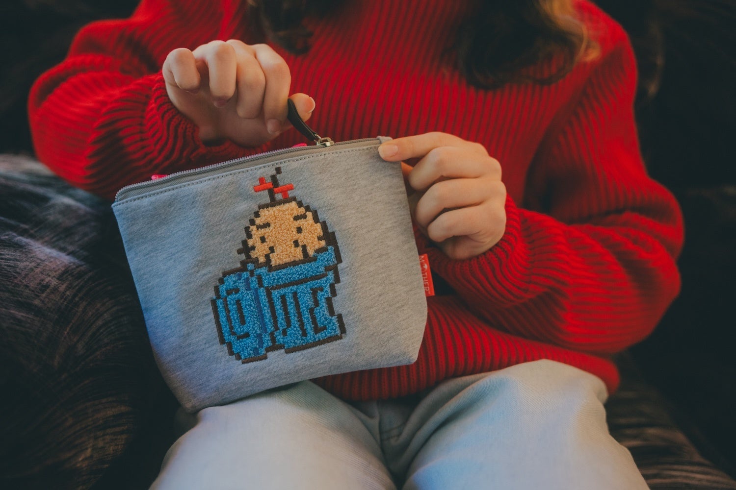 どせいさんのかわいくて便利なポーチができました。ボディは杢グレーのやわらかなスウェット生地。