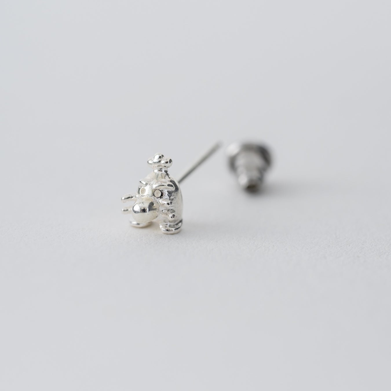 近くでよく見るとどせいさんだとわかるちいさなシルバーピアスは片耳用です。つくってくれたのはハンドメイドのジュエリーのアトリエ、PROOFOFGUILD(プルーフオブギルド)。「STERLINGSILVER」とも呼ばれ、「価値のある」「本物」と称されるシルバー925を使った職人技が光るアクセサリーです。