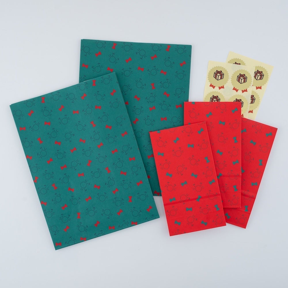 贈り物をするときにぴったりな「どせいさん柄」の紙袋とシールセットです。小さな紙袋3枚、大きな紙袋2枚、そして金色のシールが2枚のセットです。自立するほどしっかりした紙でできているので、小物の整理や仕分けに使うのもおすすめです。