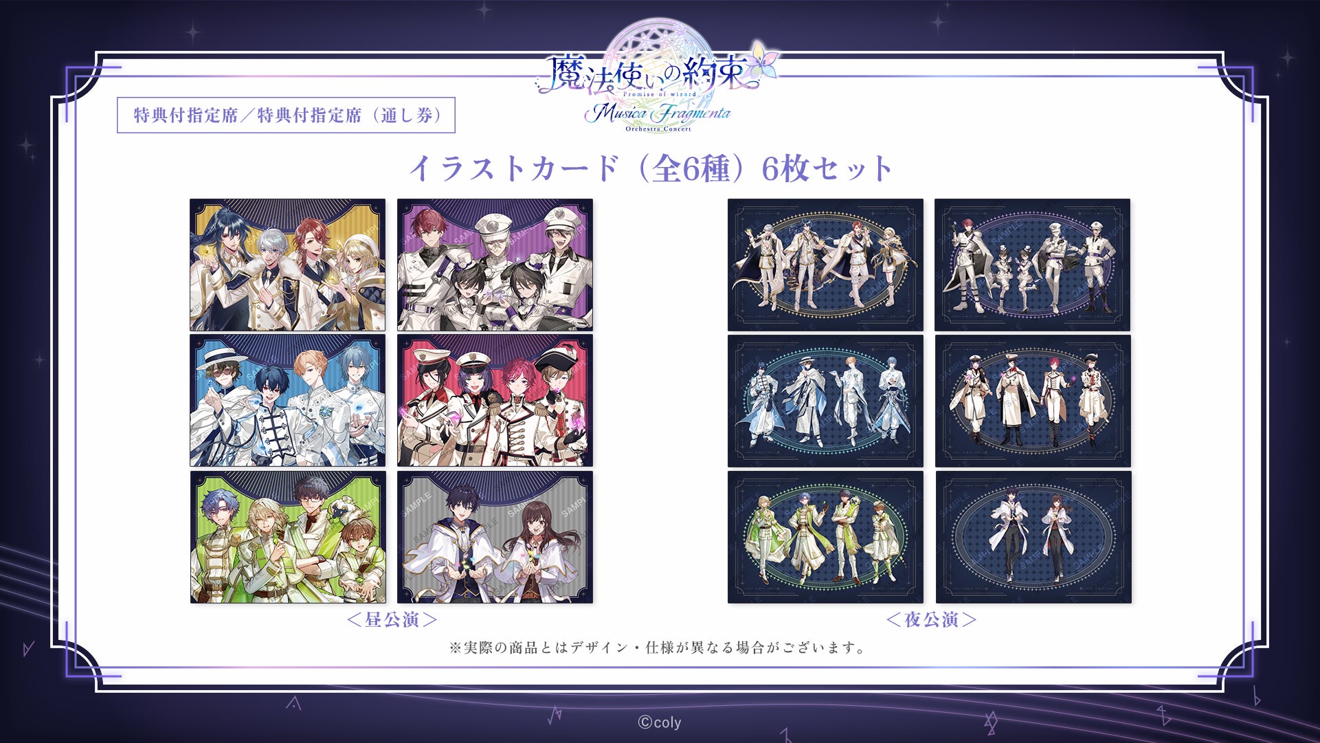 ※特典付き指定席の特典「イラストカード(全6種)6枚セット」のデザインは、昼公演・夜公演で異なります。