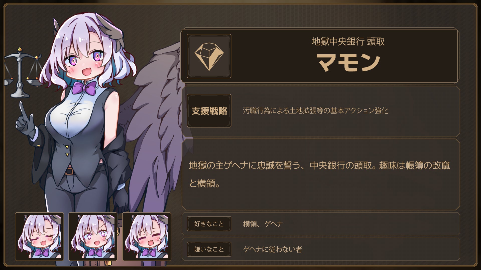 こちらは今回プレスリリースで初のご紹介となるパトロン「マモン」と、彼女の使役する使い魔「運送レイヴン」です。