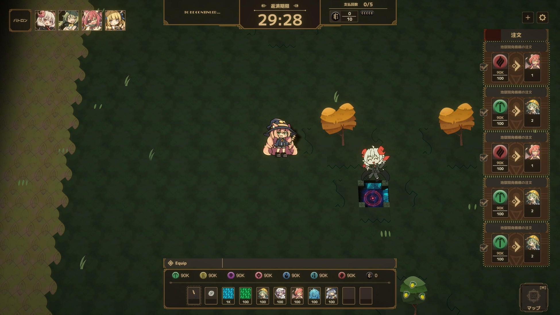 地獄に落とされた主人公の魔女モモコが、不労所得を餌に悪魔に騙されて多額の借金を背負うところからゲームが始まります。