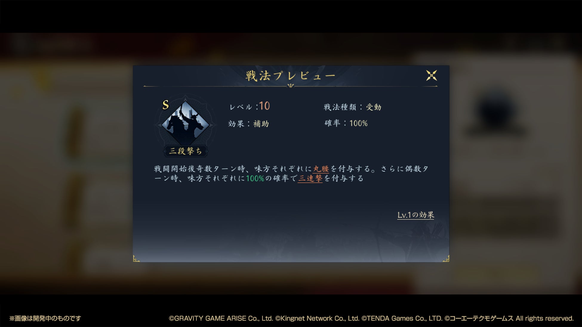 特定の条件を満たすSSR武将を複数消費することで獲得できる新戦法です。典籍戦法は、特定武将をイメージした強力な性能を持っており、獲得した戦法は通常の伝授戦法と同じくすべての武将に習得可能です。この新たな戦法を会得・習得することで、武将のスキル編制や編制バリエーションがより広がります。