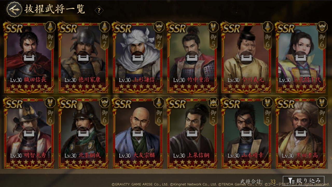 ※新武将は、シーズン3開始時の募集や、天下布武の募集から獲得できます。