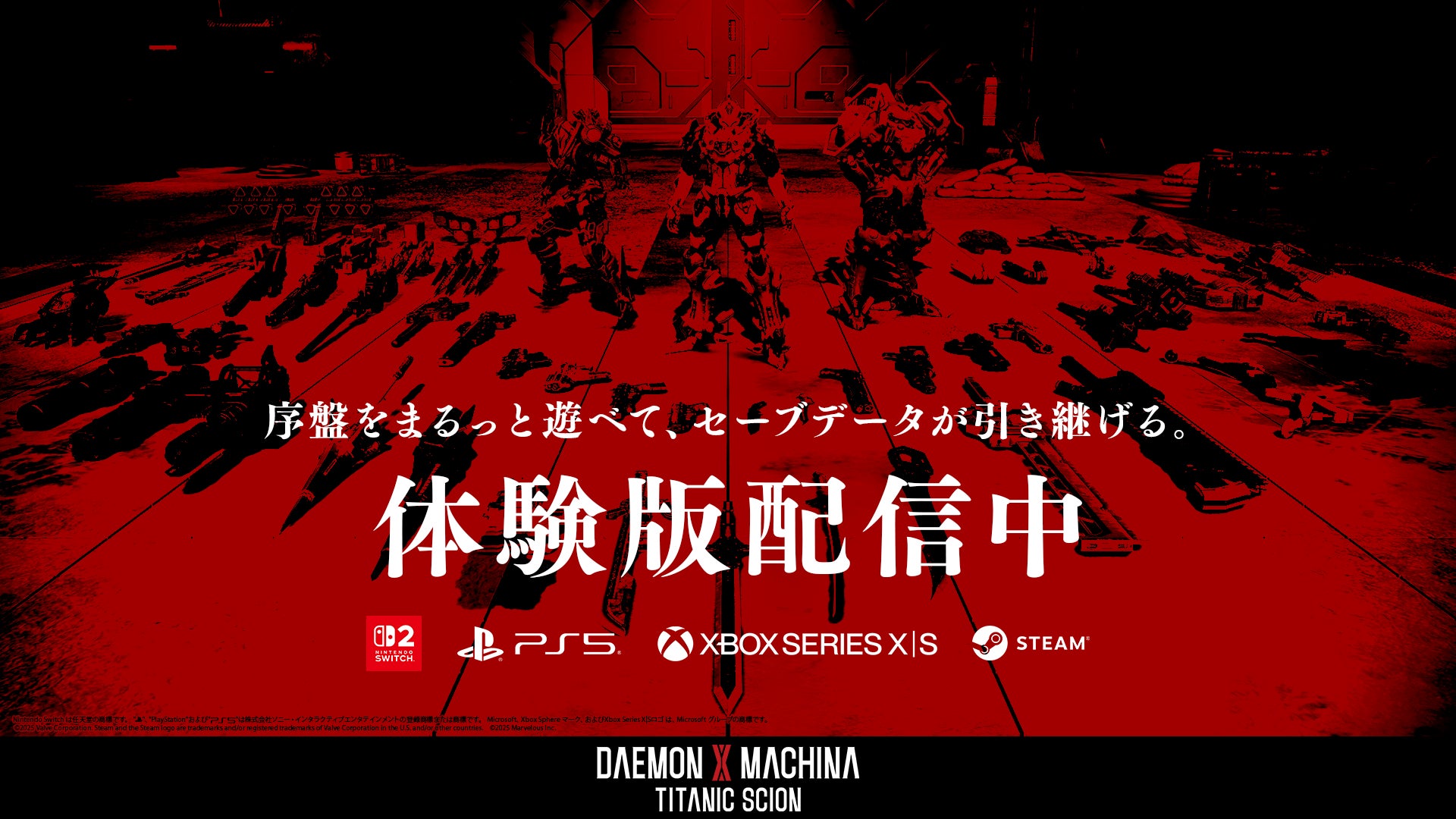 株式会社マーベラスは発売中のメカアクションゲーム『DAEMON X MACHINA TITANIC SCION(デモンエクスマキナタイタニックサイオン)』(Nintendo Switch™ 2 /PlayStation®5/Xbox Series X|S /Steam®)にて、無料アップデート第3弾(Ver1.2.1)を12月19日(金)に配信することをお知らせします。