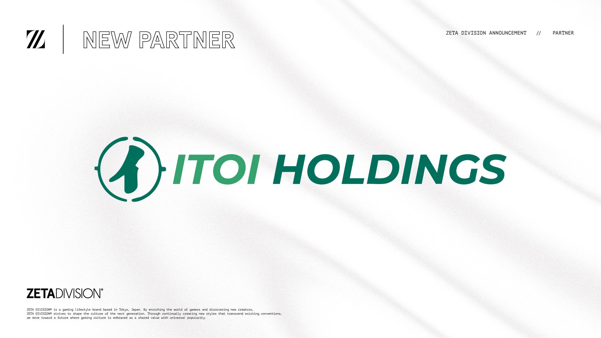 GANYMEDE株式会社(本社:東京都港区、代表取締役:西原 大輔)が運営するZETA DIVISIONは、糸井ホールディングス株式会社(本社:群馬県高崎市、代表取締役:糸井 丈之、以下「糸井HD」)と、パートナーシップ契約を締結したことをお知らせいたします。
