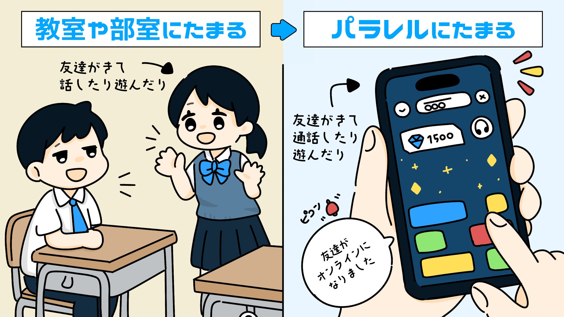 友達と遊べるたまり場アプリ「パラレル」紹介動画:https://youtu.be/1c89z1Di9zk