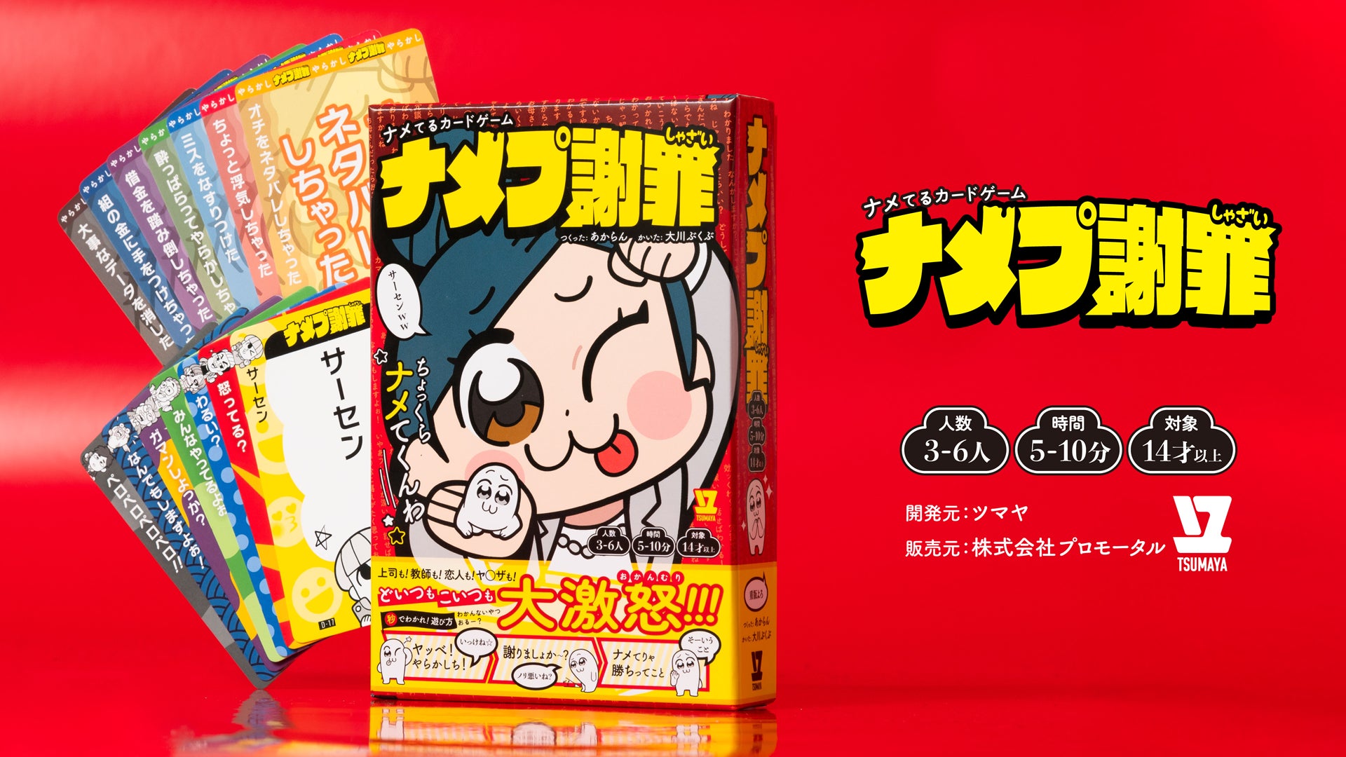 ボードゲーム開発チーム『ツマヤ』は、漫画家・大川ぶくぶ氏がイラストを担当したボードゲーム『ナメプ謝罪』の「ココフォリア版」(以下『ナメプ謝罪(CF版)』)を、オンラインセッションツール「ココフォリア」のストアページにて2025年12月19日(金)に発売します。