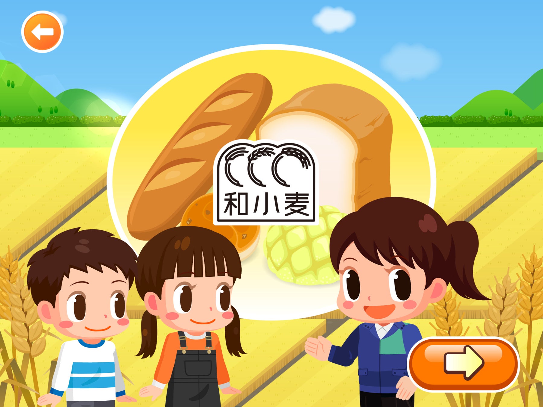 パンが小麦からできているということ、そして、にほんで育った小麦が「和小麦」のパンになるまでの工程を、お日さまの光を届けて収穫したり、小麦を挽いたり捏ねたりと、「成長」「製粉」「製品化」の3つの体験を通じて、楽しく学ぶことができるゲームです。