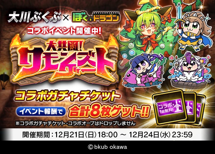 株式会社ドリコム(本社:東京都品川区、代表取締役社長:内藤裕紀、以下「ドリコム」)のグループ会社の株式会社スタジオレックス(本社:東京都品川区、代表取締役社長:相見 伸之介、以下「スタジオレックス」)提供の新感覚スマホRPG『ぼくとドラゴン』において、2025年12月18日(木)より、漫画家『大川ぶくぶ』氏とのコラボキャンペーンを実施することをお知らせいたします。
