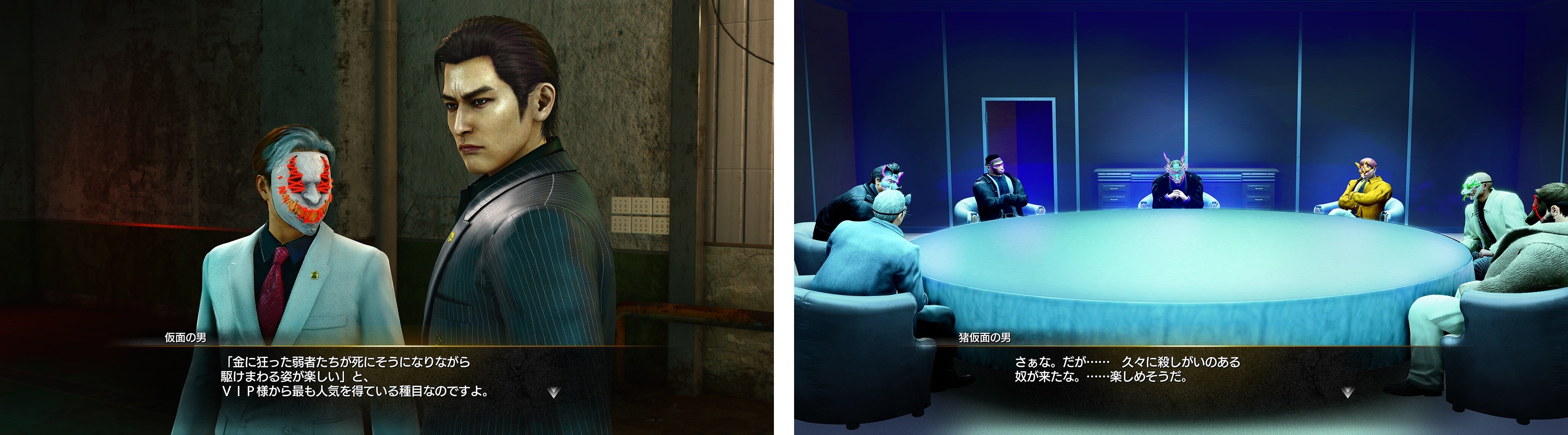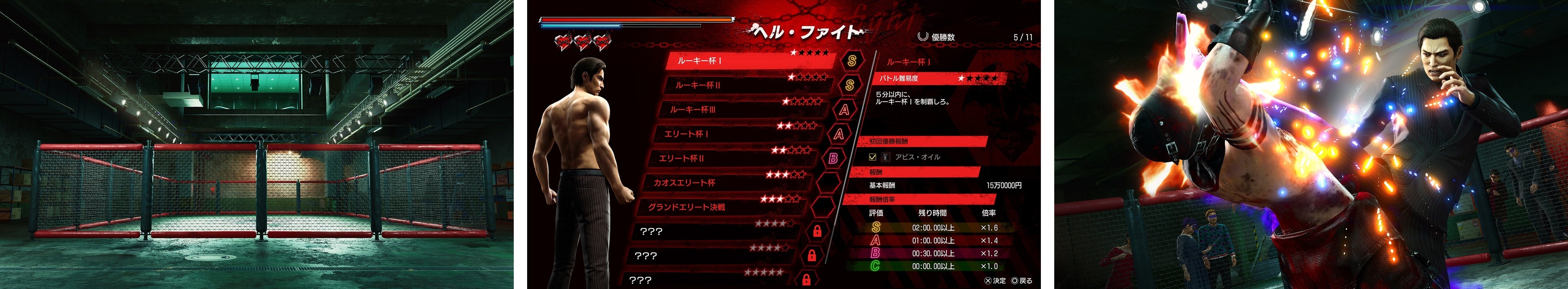 「ヘルズ・アリーナ」は、出資者のVIPが多額の賞金をかけて闘いを楽しむ、神室町の新興地下ファイトクラブだ。ここでは、参加者同士がリングの上で死闘を繰り広げる「ヘル・ファイト」と、地下ダンジョンで多くのハンターたちの猛攻の中を生き抜き、ゴールを目指す「サバイバル・ヘル」の2種類の大会が連日開催されている。