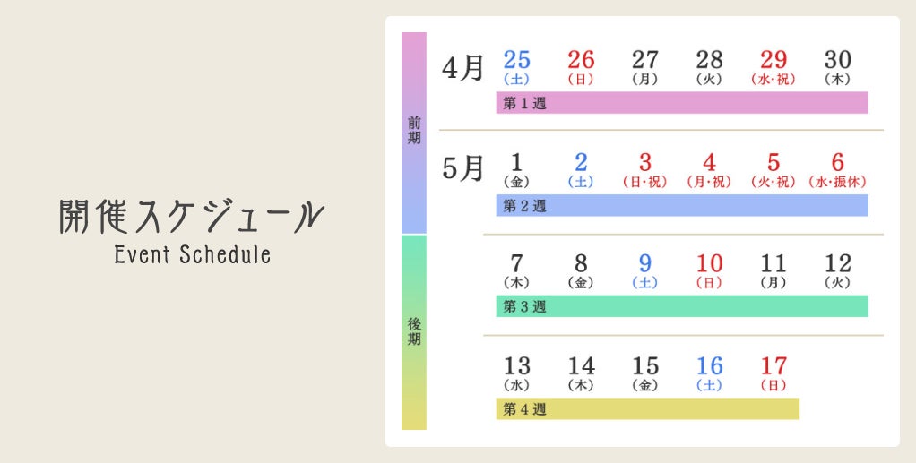 ※5/6(水・振休)、17(日)は18:00までの営業となります。