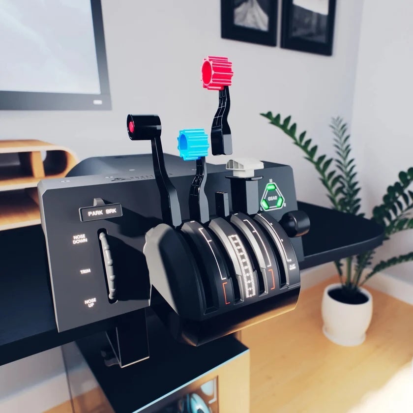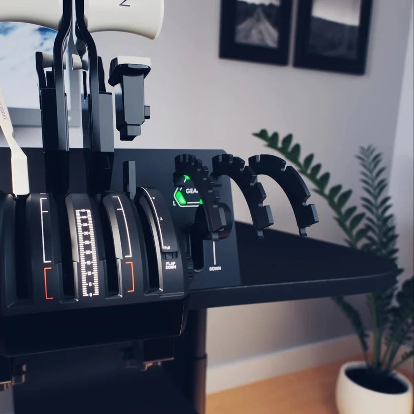 「Bravo Throttle Quadrant LITE(ブラボー スロットル クアドラント LITE)」(HC003790)は、コンパクトでシンプルな設計ながら、4つの大型交換可能レバーと調整可能なテンションにより、単発一般航空機から双発機まで幅広い機体構成に対応、パーキングブレーキ機能、トリムホイール、交換式フラップデテントインレイ、ランディングギアも備えています。