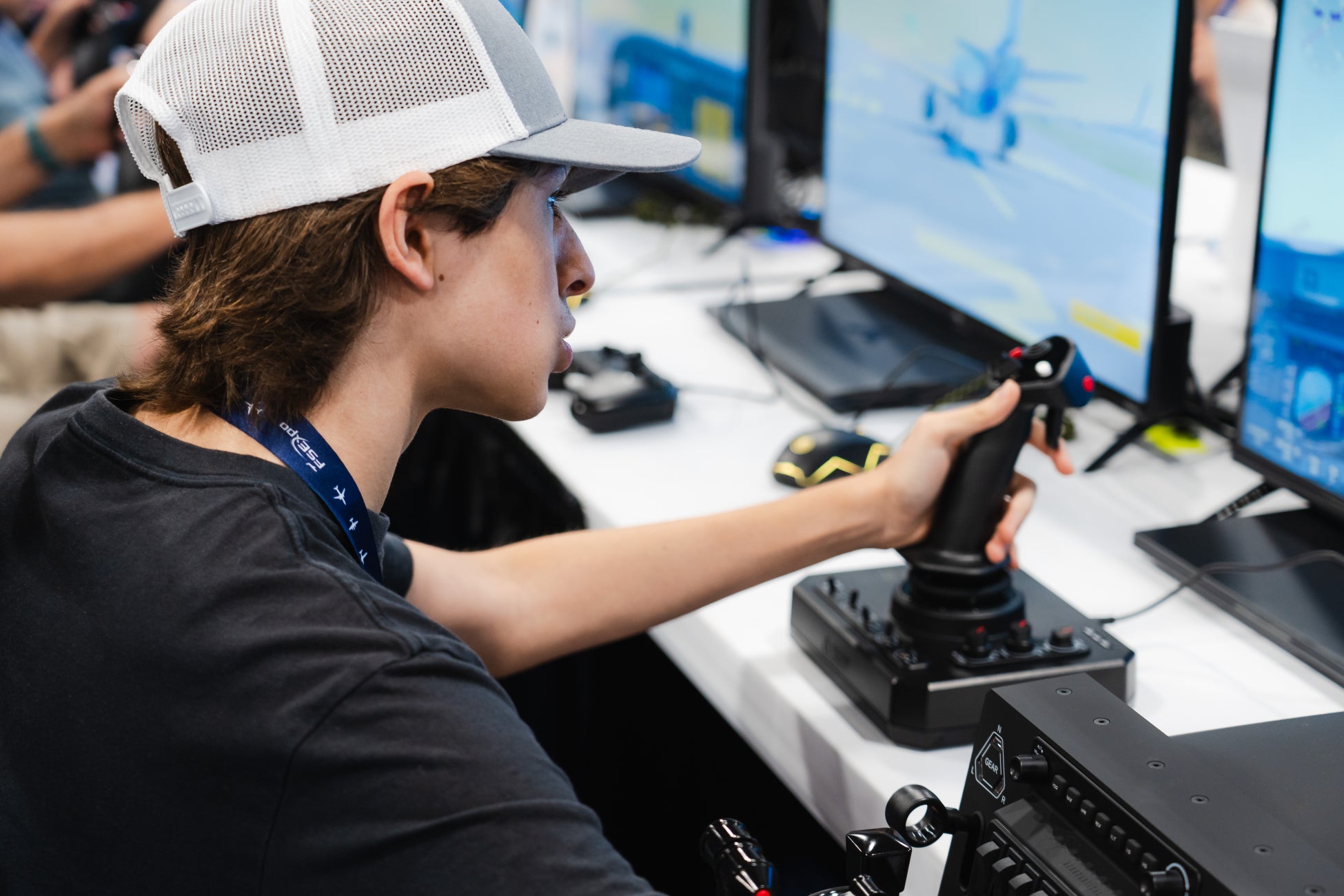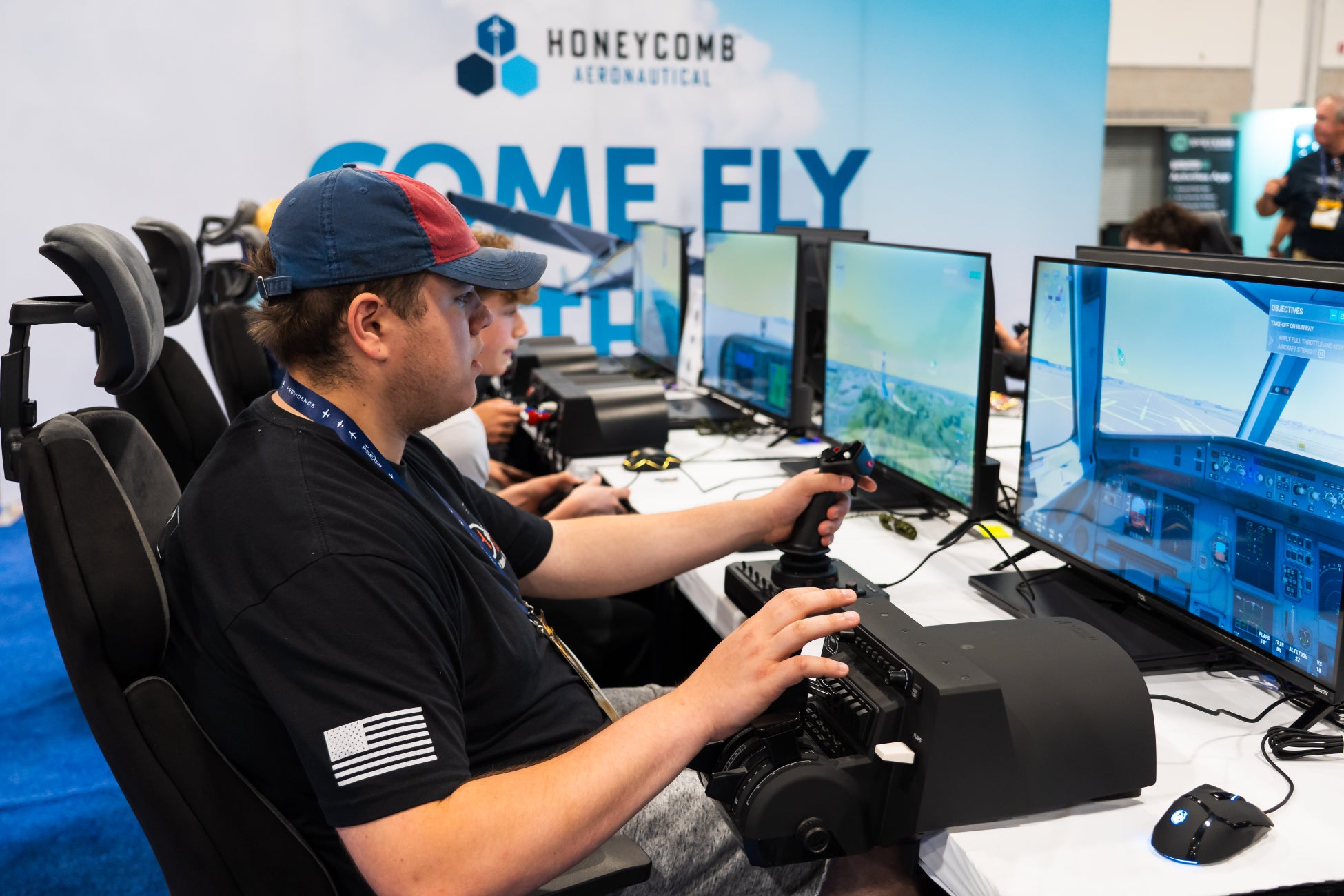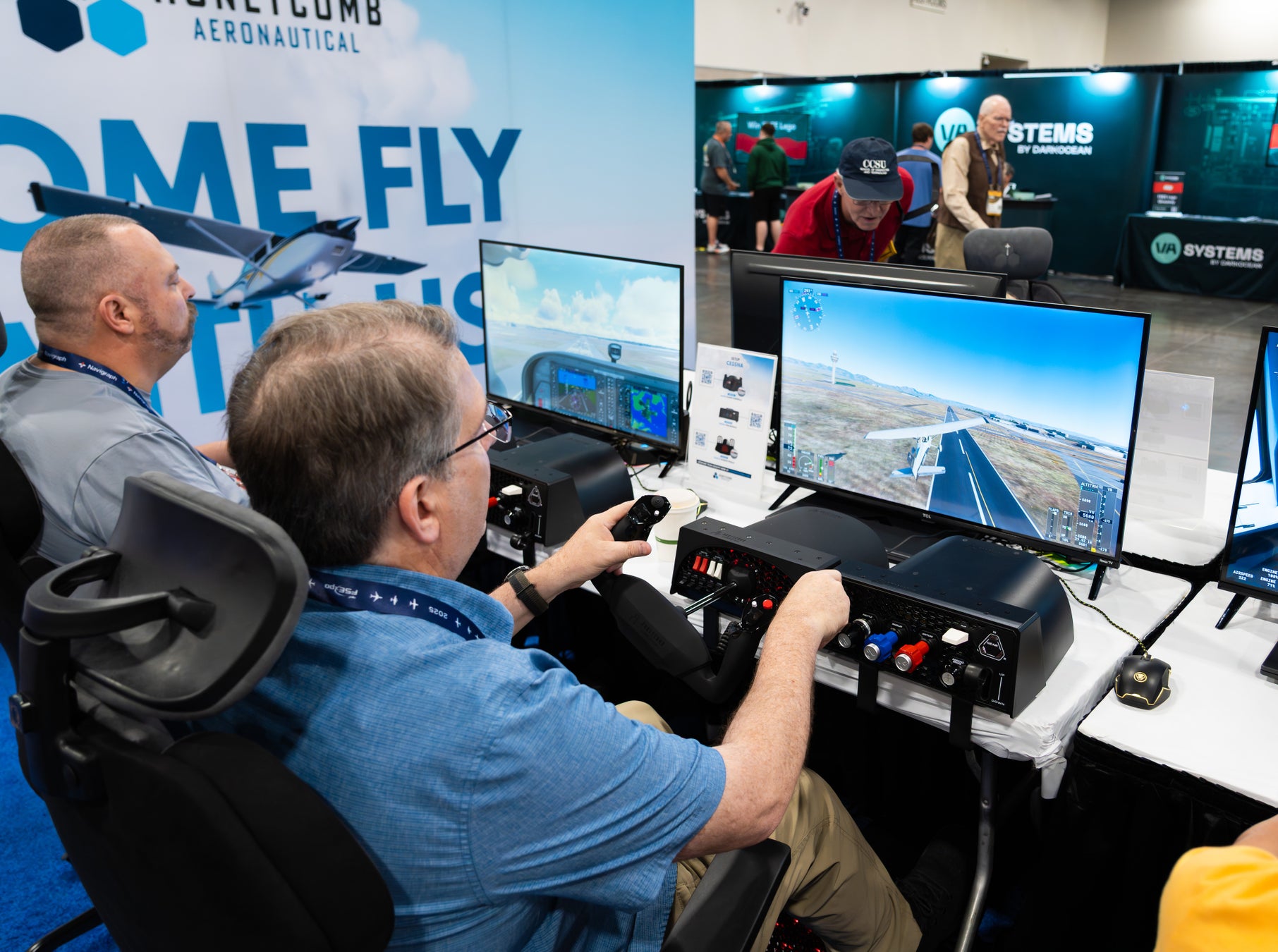 北米最大級のフライトシミュレーションの祭典 FlightSimExpo 2025 における ハニカム エアロノーティカル 新商品デモ試遊の様子
