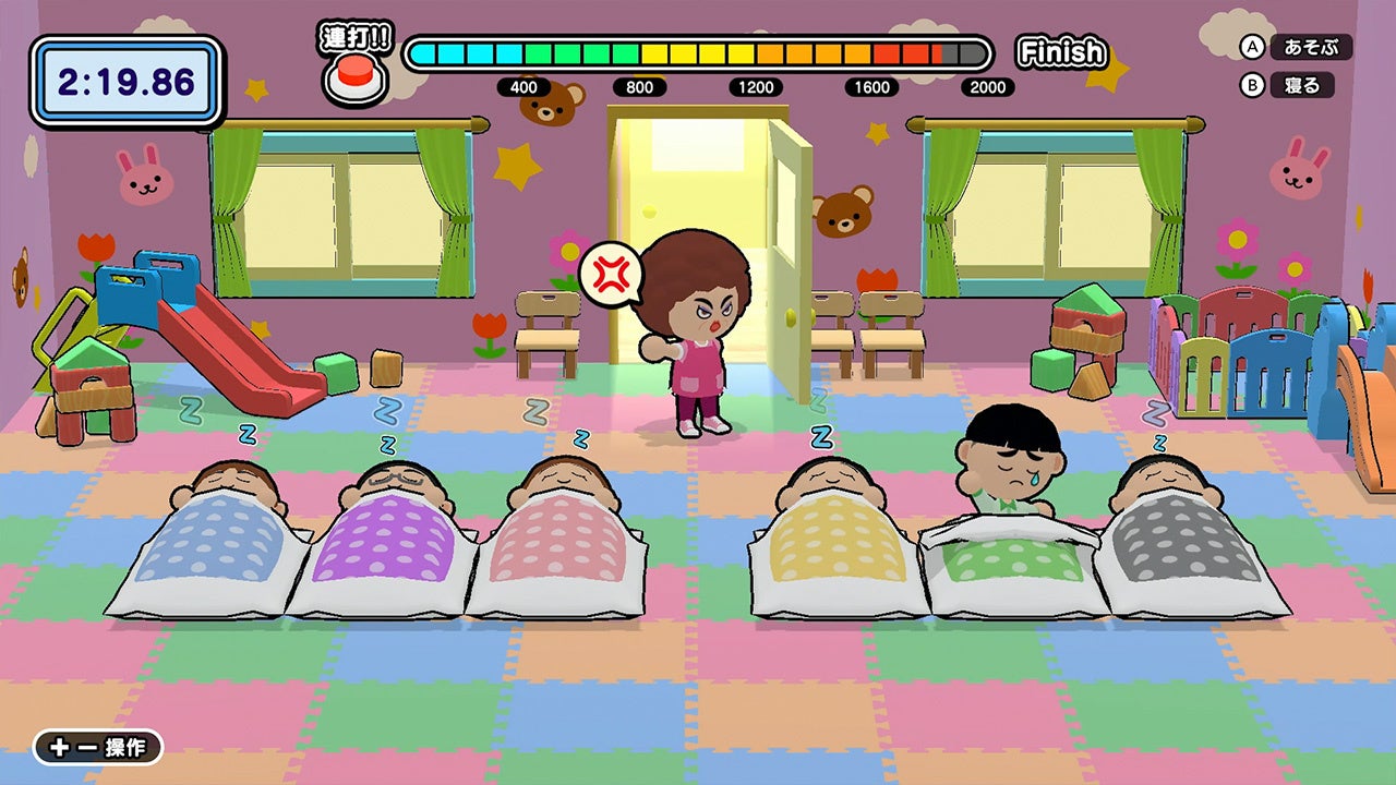 ゲームの基本ルールは、見回りキャラクターの動きを見極めながら、バレないように夜ふかし行動を行い、スコアを稼いでいくというもの。