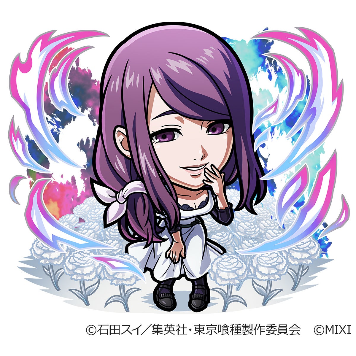 本コラボでは、「金木 研」「霧嶋董香」「月山 習」をはじめとしたTVアニメ『東京喰種トーキョーグール』のキャラクターがコラボ召喚に登場します。また、アプリ内でTVアニメ『東京喰種トーキョーグール』コラボ記念「神代利世パック」を購入すると「神代利世」を入手できます。