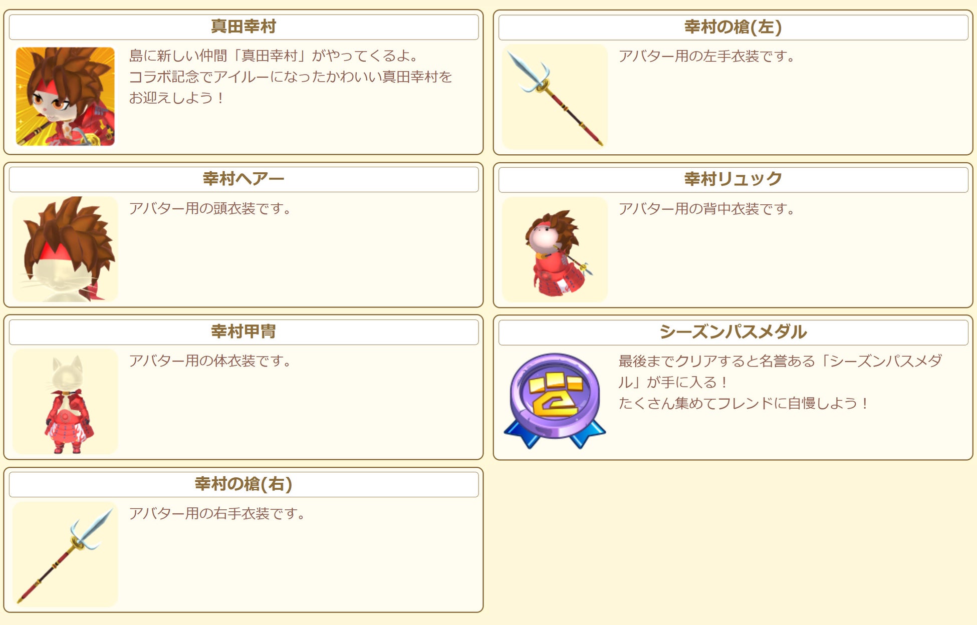 イベントに参加して新しい仲間「真田幸村」を島にお迎えしたり、アバター用の衣装「幸村甲冑」などの豪華な報酬を獲得しよう!