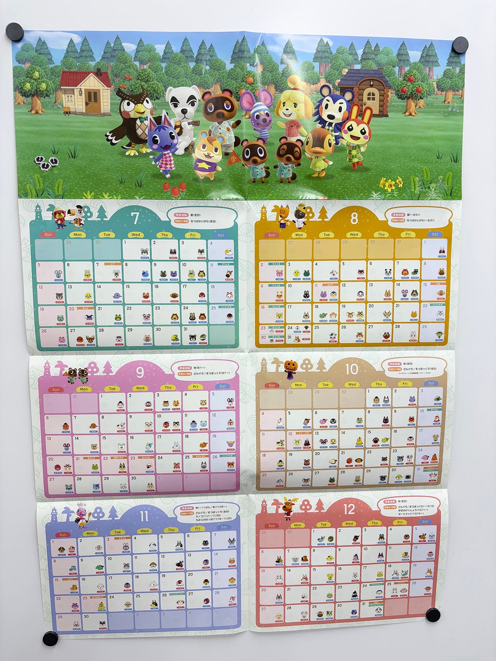 現実世界の祝日・主な年中行事の日にちも入っていて、普段使いにもバッチリ。壁に貼るのもよし、折りたたんで手元に置くのもよしの2WAY仕様となってます。