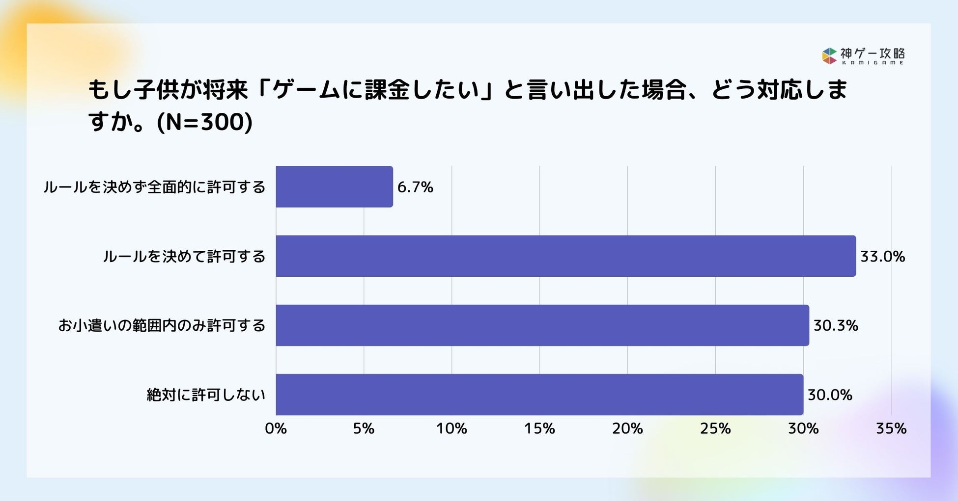 ・子供の将来の課金には「ルール付きで許可」が多数派