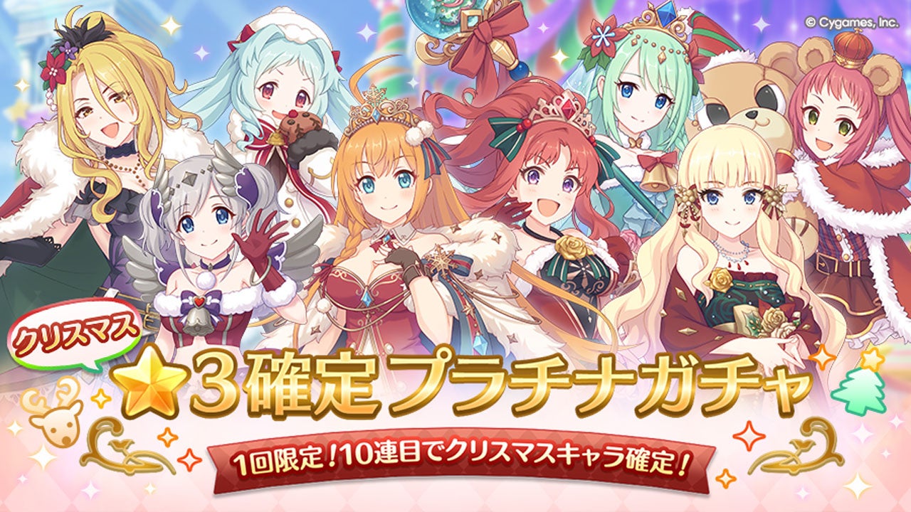 12月21日(日)から[10回引く]の10キャラ目に、対象のクリスマス★3キャラが確定で出現する、「クリスマス★3確定プラチナガチャ」を期間限定で開催中です。