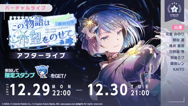 イベント終了後には「バーチャルライブ」でのアフターライブとして、「この物語は希望をのせて アフターライブ」を開催いたします。