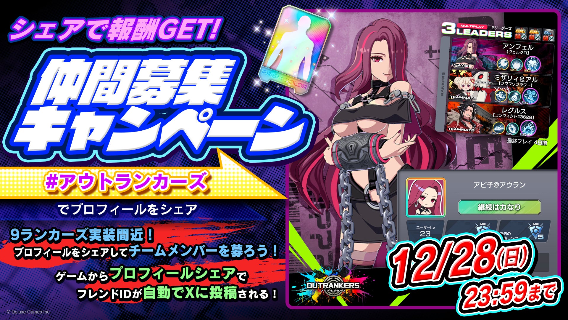 「アウトランカーズ シーズン2直前特番!」配信記念および、『アウトランカーズ』における仲間募集を目的としたキャンペーンをXにて実施します。詳細については各キャンペーンの概要をご参照ください。