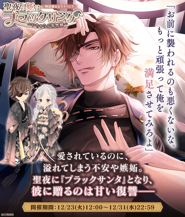 12月23日(火)12時から開催する物語進めようイベント「聖夜の姫はブラックサンタ~いちゃらぶ復讐劇~」と期間限定姫チャレンジとの連動企画を実施しています。