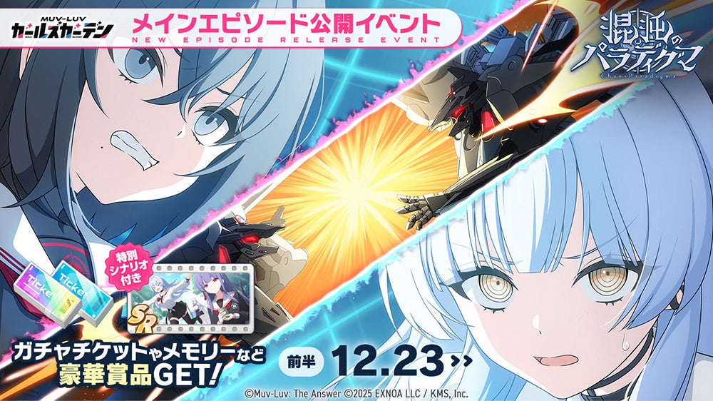 合同会社EXNOA(本社:東京都港区、CEO:東條 寛、URL:https://games.dmm.com/)と株式会社KMS(本社:東京都品川区、代表:梶原 健太郎、URL:http://kms3.com/ )が贈るマブラヴ最新作『マブラヴ ガールズガーデン』(以下、マブガル)が12月23日(火)より、新章解放イベント「混沌のパラディグマ」を開催しました。