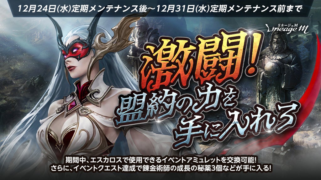 PCオンラインRPG「リネージュ」のモバイル版タイトル『Lineage M(以下、リネージュM)』のサービス、運営をしているエヌ・シー・ジャパン株式会社(本社:東京都港区、代表取締役:林 元基(イム ウォンキ)、以下エヌシージャパン)は、2025年12月24日(水)より、イベント「魔王の祝福」、クリスマスイベント2種、およびワールドダンジョン入場支援イベントの開始をお知らせします。