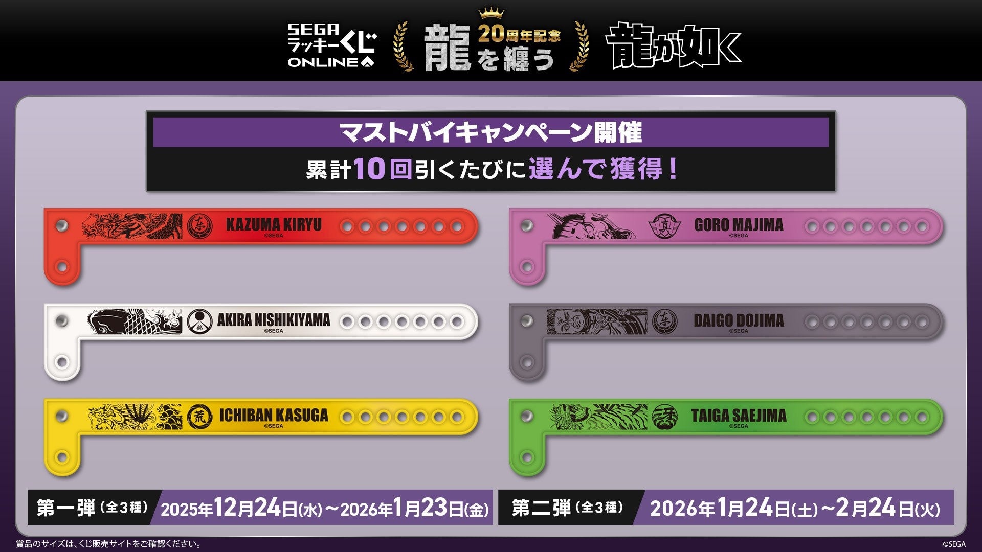 株式会社セガ フェイブは、セガ ラッキーくじオンライン『龍が如く』20周年記念 第二弾「龍を纏う」を2025年12月24日11時より販売開始いたします。