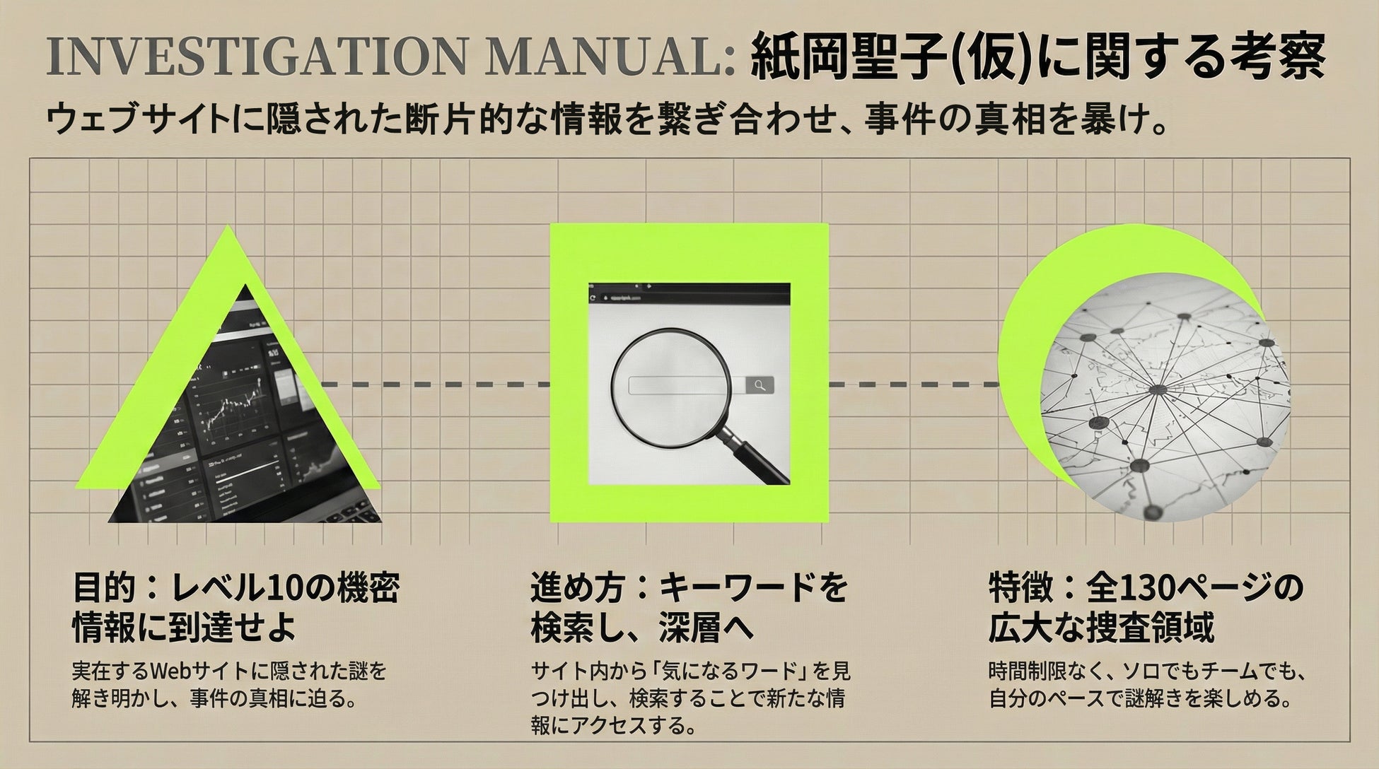 「ある少年院」を舞台とし、Webサイトを調査することで物語の深奥を覗くことができる、無料のミステリーゲームとなっています。