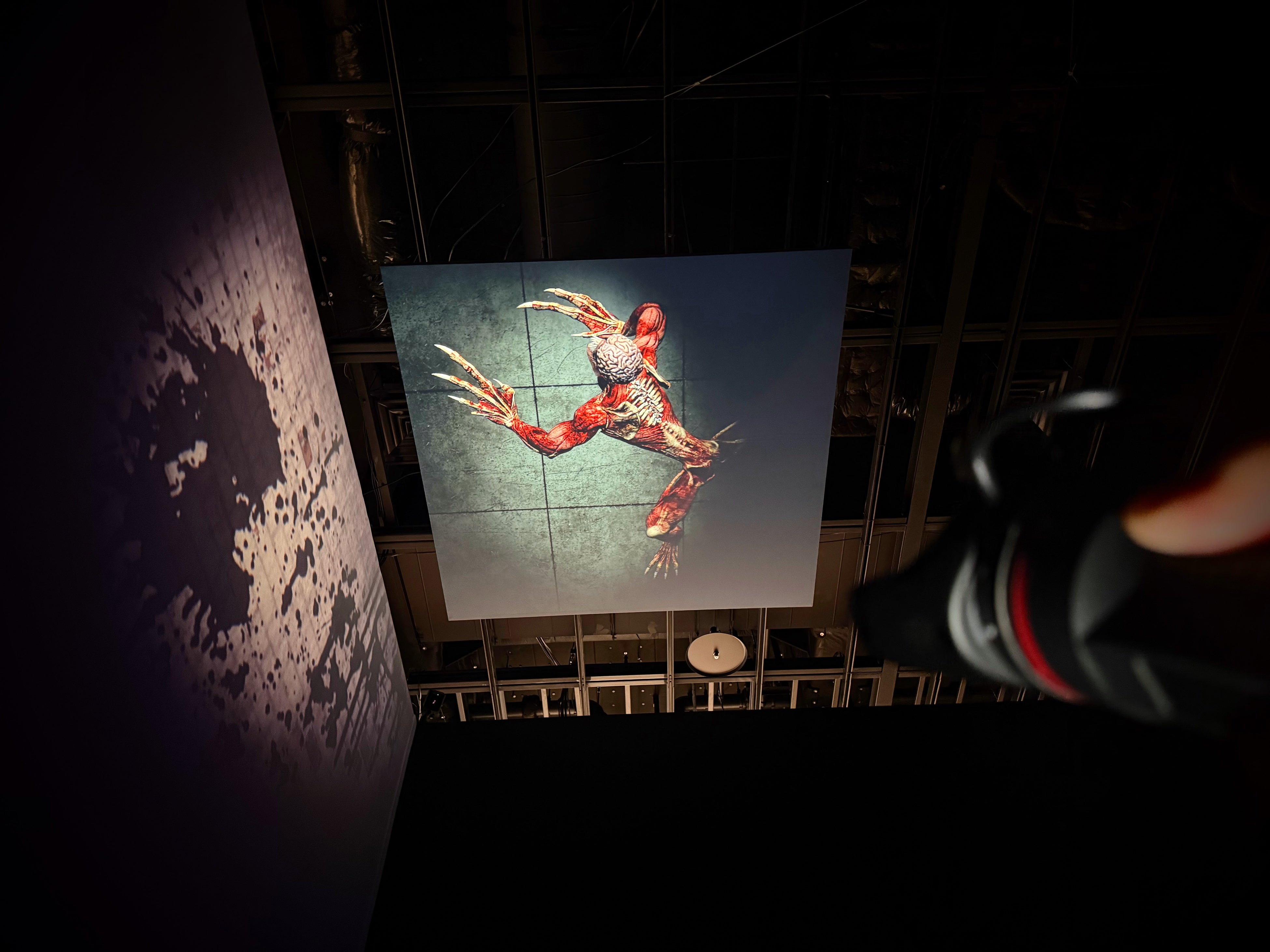 「バイオハザード」の世界観を新感覚で体験できるインスタレーション展示。特別なセンサーが向けられた壁面のみにゾンビなどの映像が投影されます。