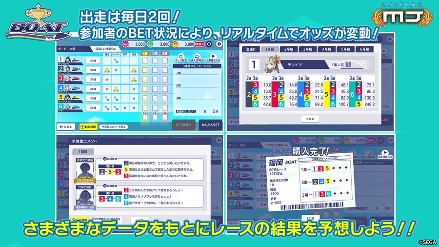 株式会社セガは、iOS/Android/Windows PC版ネットワーク対戦麻雀ゲーム『セガNET麻雀 MJ』(以下、MJアプリ)において、カジノモードの新ゲーム「ボート」の正式リリースを2025年12月25日(木)に実施しました。