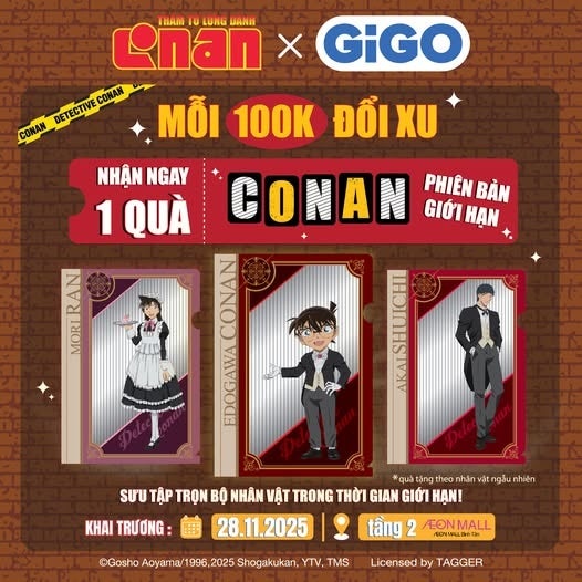 商品のお会計100,000vnd(税込)約600円ごとに「名探偵コナン」限定クリアファイルをランダムで1枚プレゼントいたします。