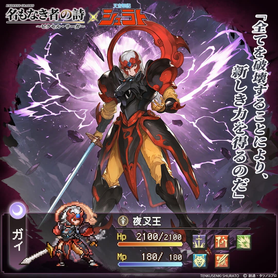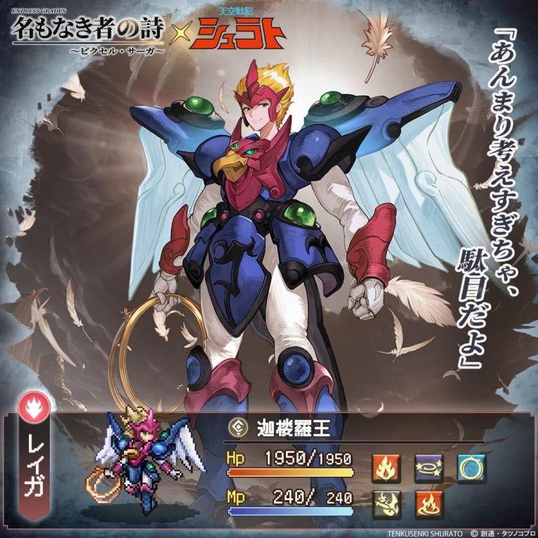 Lightcore Games Limitedは、運営する放置系ドット絵RPG『名もなき者の詩』において、TVアニメ『天空戦記シュラト』とのコラボイベントを、正式に開始したことをお知らせいたします。本コラボレーションは、放送から長きにわたり愛され続ける『天空戦記シュラト』の史上初のスマートフォン向けゲームコラボレーションとなり、株式会社創通、株式会社タツノコプロの正式監修のもと実施されます。