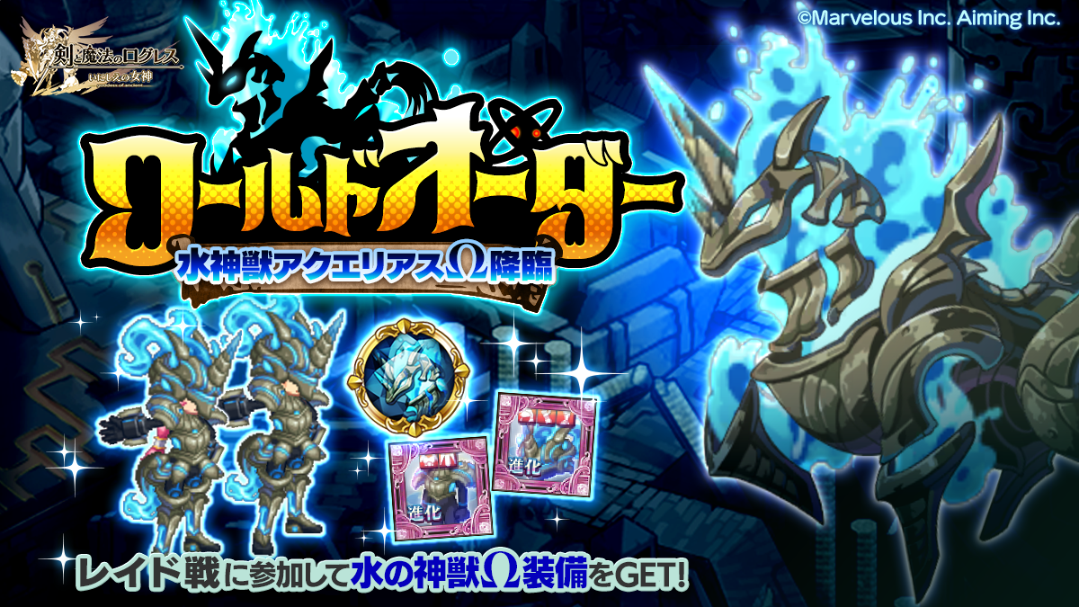 レイド戦で水神獣アクエリアスΩに挑み、潜在能力解放が可能な「神獣アクエリアスΩの覇装」等の報酬をGETしよう!