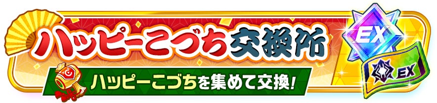 期間中にバトルをすると、「ハッピーこづち」を獲得できます。「ハッピーこづち」交換所で「八雲めでたきお正月EXスキルガチャチケット」や「EXスキルチップジェム」などと交換できます。また、2026年1月1日(木)からは新年を記念した特別なアイコンフレームを追加します。