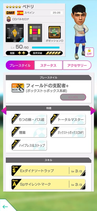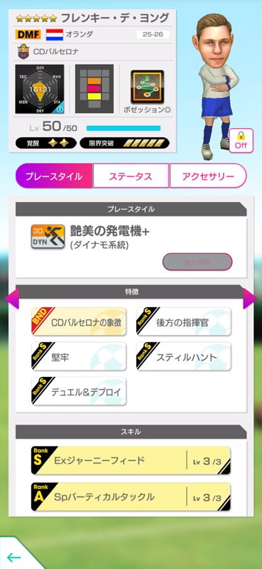 ★6監督「サンジ・クリック」は、マークとパスが大アップし、守備意識が中アップするポリシー特徴「攻撃的守備」を所持しています。