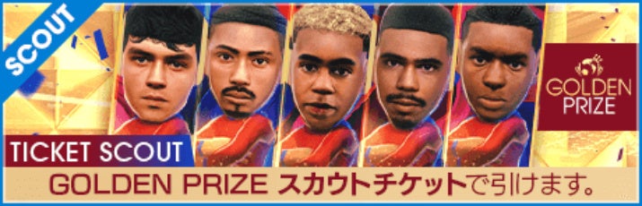 今回のスカウトは「通算ボーナス」つきです。この“GOLDEN PRIZE SCOUT”で通算100人目と300人目の選手を獲得すると、このスカウトにラインナップされている★5選手の中から好きな1人を選んで獲得できる「GOLDEN PRIZE交換チケット」が手に入ります。