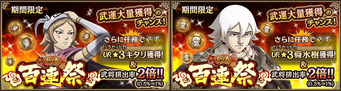また、ガチャを100セット引くと特別任務にて、武将を選んで入手できる『★6武将選択宝箱【新春】』を獲得できます。