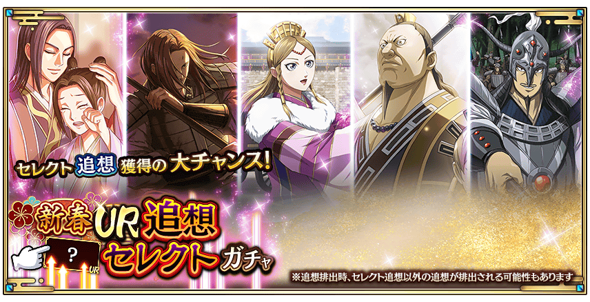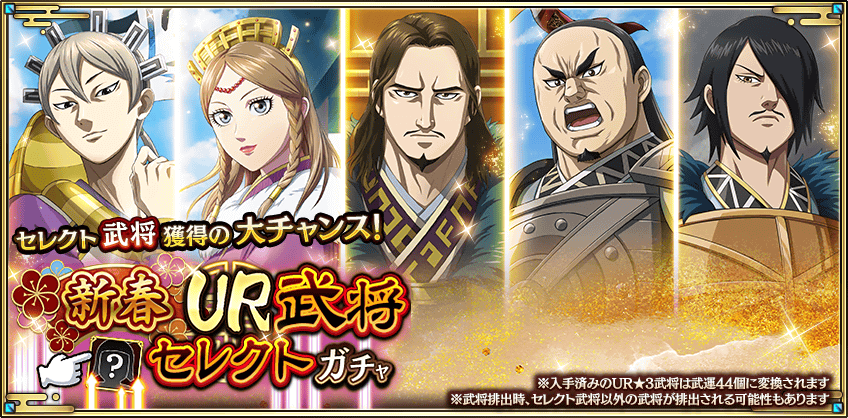 排出対象となる多数のUR武将から、排出確率を高めたい武将を選べます!