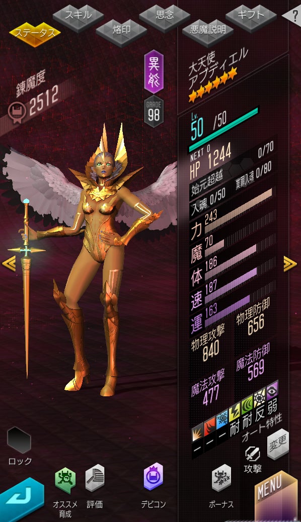 破魔貫通を得る。緊縛・魅了・魔封無効を得る。