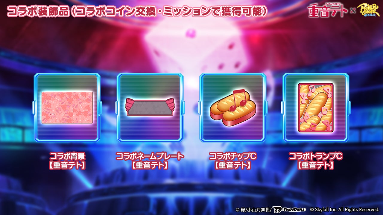 コラボ開催期間中に、ランク戦やイベントミッションを通して「コラボコイン【重音テト】」を獲得できます。
