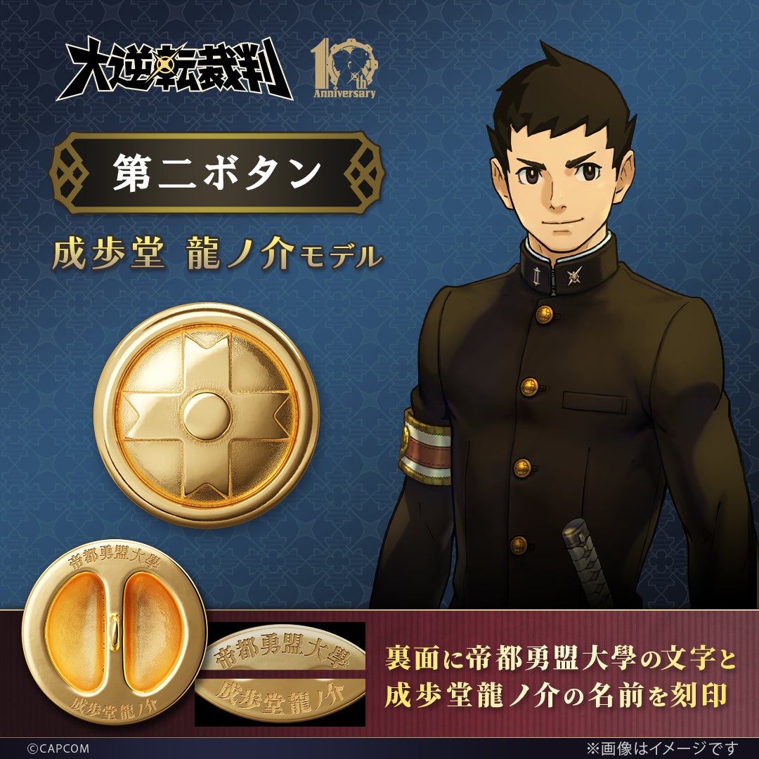 株式会社ユートレジャー(本社:東京都新宿区、代表取締役社長:青木 興一、株式会社ケイ・ウノの連結子会社)は、2025年7月9日で10周年を迎えた「大逆転裁判」シリーズとコラボレーションした「第二ボタン」の予約受付を2026年1月7日(水)~2月16日(月)の期間、ユートレジャーオンラインショップ、ユートレジャーコンセプトストア池袋、心斎橋(1月16日(金)オープン)にて行います。