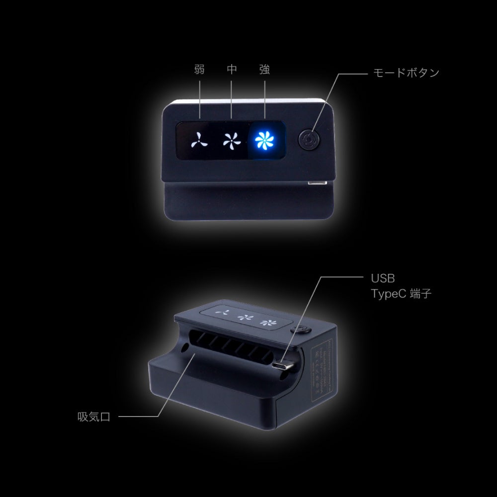 本体サイズは幅74×奥行34×高53(mm)、風量は強・中・弱と3段階の調整が可能。