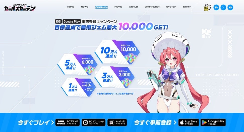 公式X(@Muvluv_GG)ではアプリ版事前登録開始を記念して、抽選で最大50,000円分のAmazonギフトカード番号が合計7,000人(毎日1,000人)にその場で当たるインスタントウィンキャンペーンを開催中です。キャンペーンポストは公式Xより毎日投稿しておりますので、是非公式Xをフォローしてキャンペーンにご参加ください!