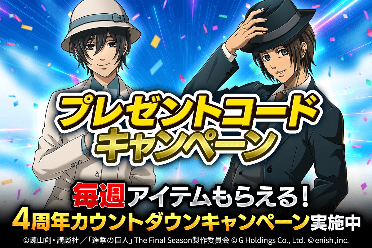 株式会社enish(本社:東京都港区、代表取締役社長:安徳 孝平、以下enish)は、アニメ『進撃の巨人』のスマートフォンゲーム最新作「進撃の巨人Brave Order」にて、2026年1月13日(火)より、新イベントの甘い輪の紡ぐ夢を開催&新章34、35が解放!また、本日より【ダイナー】ペトラ・ラル、【ダイナー】ニファが登場する「甘い輪の紡ぐ夢ガチャ」も開催!その他、最新情報はゲーム公式サイト・ゲーム公式X(旧Twitter)アカウントにて随時公開して行きますので、ぜひご覧ください。