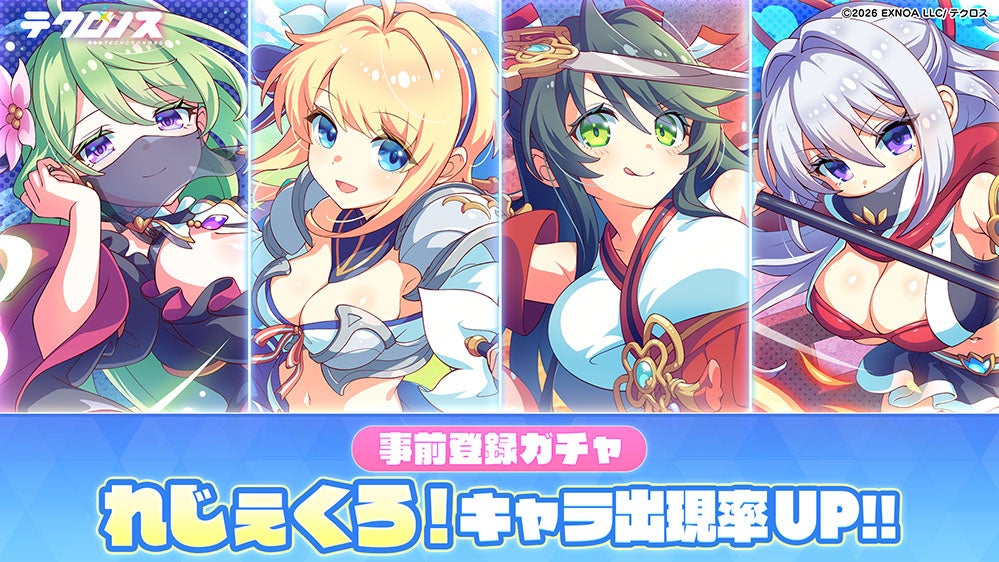 合同会社EXNOA(本社:東京都港区、CEO:東條 寛、URL:https://games.dmm.com)と株式会社テクロス(本社:京都府京都市右京区、代表:辻 拓也、URL:https://techcross.co.jp)は、4つの刻が交差するクロスヒロインRPG『テクロノス』(https://techcronoss.com)の事前登録ガチャに新キャラ「パンドラ」「呂布」が追加されることを発表。