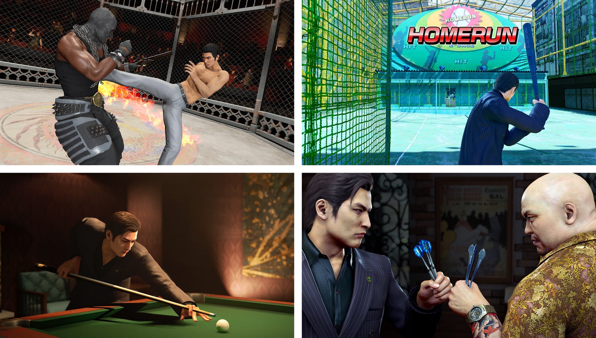 本作のカラオケには、桐生の歌う新曲2曲が登場。また、過去作からお馴染みの楽曲も復活。遥や真島、そして歌手の和田アキ子さんが演じるアッコさんなど、さまざまなキャラクターを誘って一緒にカラオケを楽しめるのも魅力!