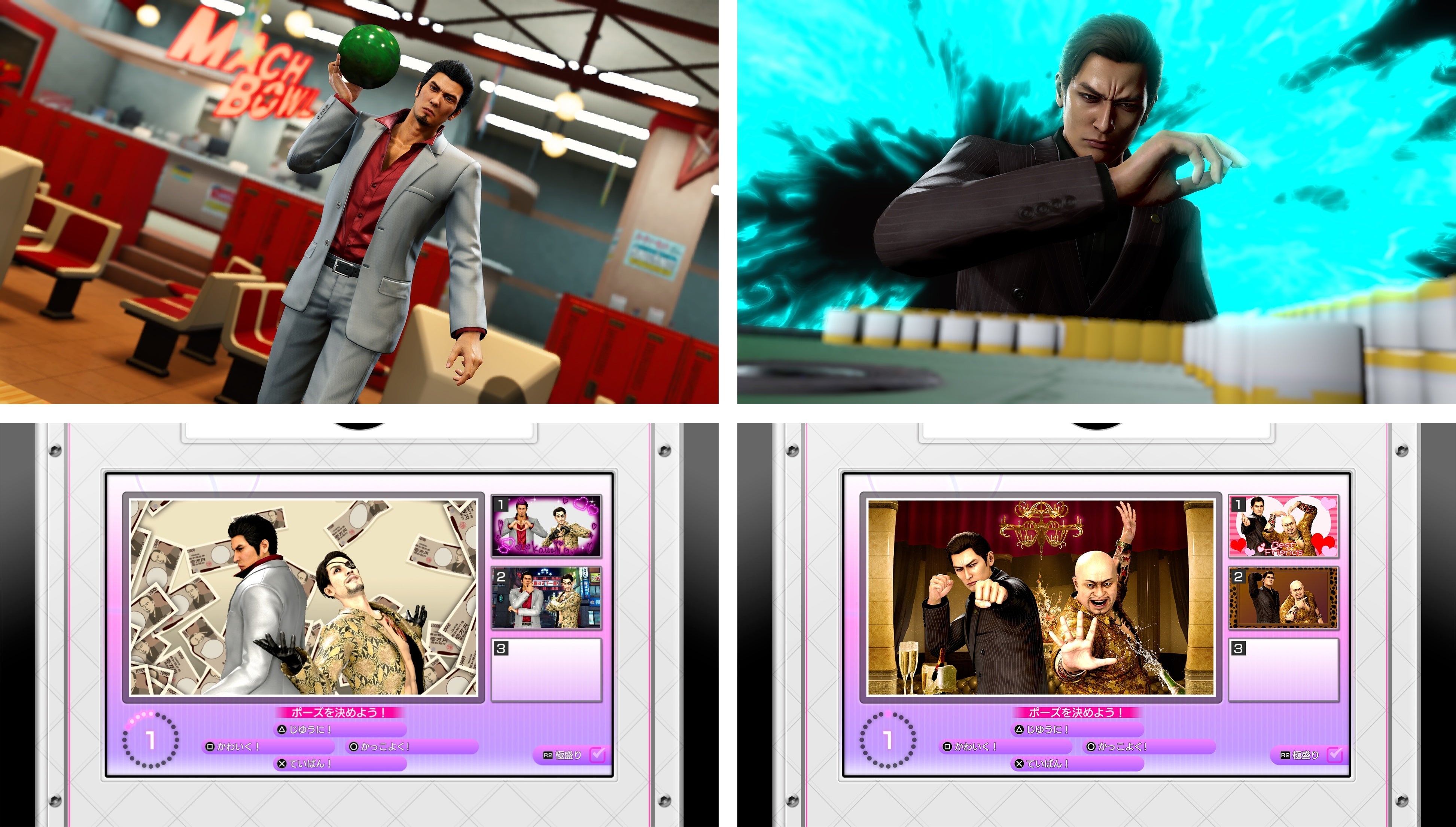 本作のカラオケには、桐生の歌う新曲2曲が登場。また、過去作からお馴染みの楽曲も復活。遥や真島、そして歌手の和田アキ子さんが演じるアッコさんなど、さまざまなキャラクターを誘って一緒にカラオケを楽しめるのも魅力!